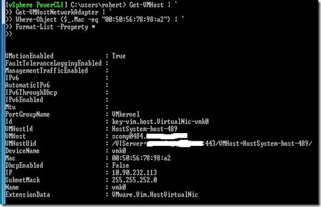 How to use VMware vSphere PowerCLI to find an ESX/ESXi server by MAC address