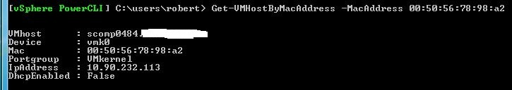 How to use VMware vSphere PowerCLI to find an ESX/ESXi server by MAC address