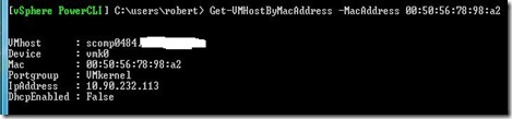 How to use VMware vSphere PowerCLI to find an ESX/ESXi server by MAC address